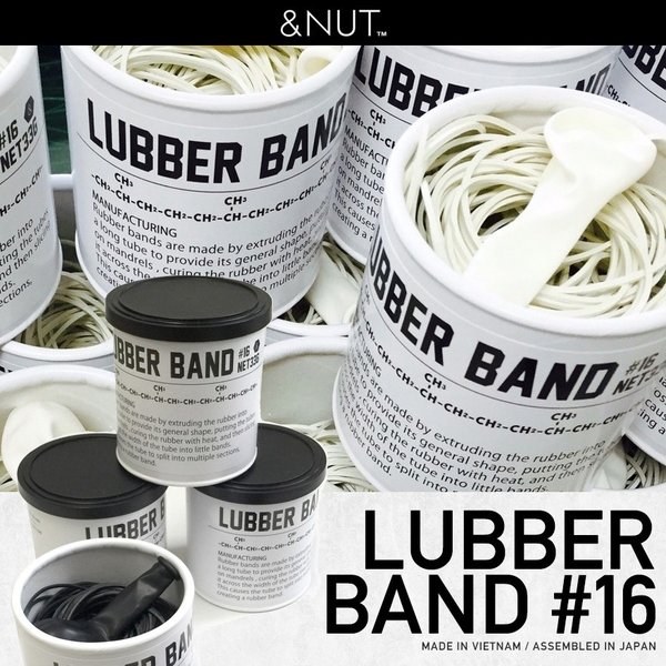 WHITEとBLACKのシンプルな輪ゴムです。 パッケージデザインをスッキリさせて、デスクの上に出しっぱなしでも雰囲気を損ねません。おまけの輪ゴムと同色の風船がひとつ入ってます。 「RUBBER」ではなく、「LUBBER・不器用な」バンドです。 サイズ dia66*70 (NET:33g) 生産 ベトナム
