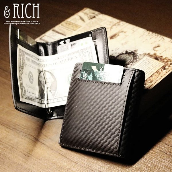 イタリアカーボンレザーを贅沢に使用したマネークリップ付きカード入れです。