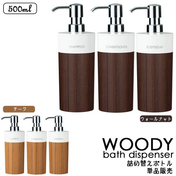 プラスチック製だから、陶器製品と異なり、軽くて持ち運びが簡単です。 サイズ 約直径7.5×高さ21.3(cm)内容量500ml材質 フタ・本体:AS樹脂、ポンプ:ABS樹脂、パイプ:ポリエチレン 種類 シャンプー、コンディショナー、ボディソープカラーウォールナット、チーク 生産国日本製