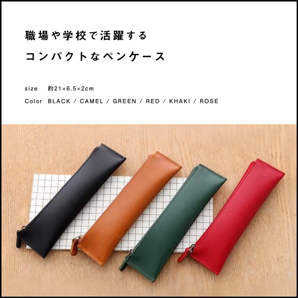 シンプルで落ち着いた雰囲気のペンケースです。 文房具をコンパクトにまとめられるので持ち運びに便利。 高級感のある柔らかいレザーのような材質で、耐久性にも優れています。 ◆サイズ 横:約21cm 縦:約6.5cm 幅:約2cm