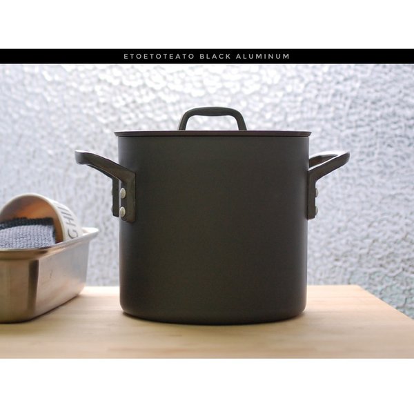 ストックポット ブラック×ブラック アルミ 18cm ETOETOTEATO/エトエトテアト プロの技にも応える確かな品質。スタイリッシュ×優れた耐久性。 業務用鍋の能力と、家庭鍋の手軽さの両者を合わせ持つ実力派。 サイズ Φ180 D165 6.8L 素材 アルミニウム/アルマイト加工 生産国 日本