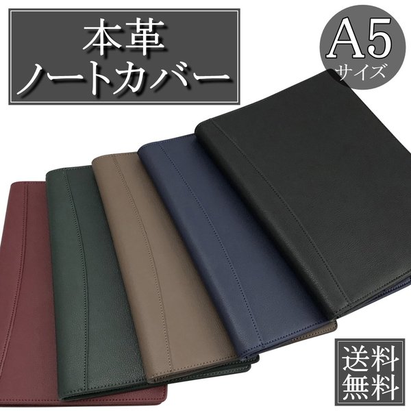 ブランド:PHLOX(フロックス) カラー:ブラック / ネイビー / ブラウン / グリーン / ワインレッド サイズ:約 縦22.8cm×横17.3cm(A5サイズ) 重量:約235g 素材:外側 / 本革 内側 / 本革 仕様:外側:フリーポケット×1 / 内側:差込口×3(ノート、メモ帳、手帳等2冊収納可)