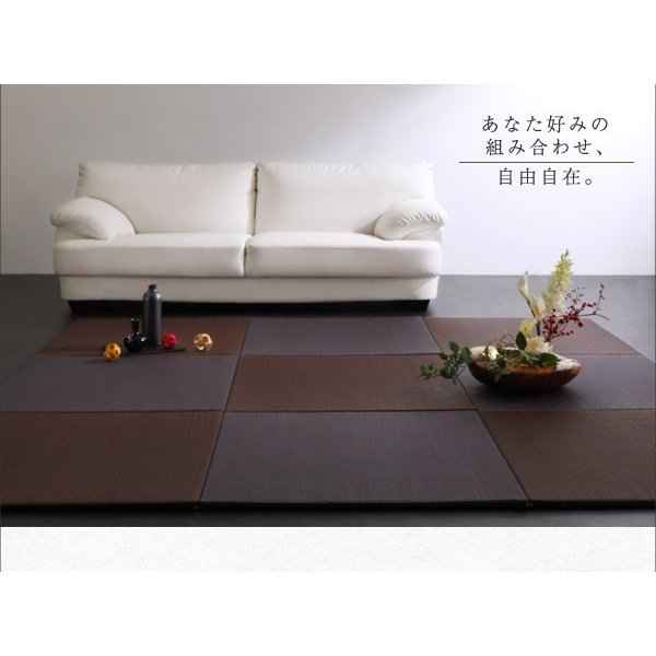 【サイズ】 70×70×1.7cm 【素材】 表地:い草100% 床材:ポリエステル100%(15mm) ジョイント:エラストマー樹脂(2個/枚) 【生産国】 日本