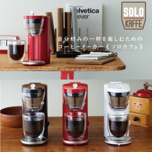 商品説明】シンプル&スリムでスタイリッシュな1カップコーヒーメーカー「ソロカフェ」。熱々のホットコーヒーはもちろん、急冷のアイスコーヒーも淹れたての味わいが楽しめるよう、耐熱のダブルウォールグラスをセットにしました。本体は3色のカラーバリエーション。