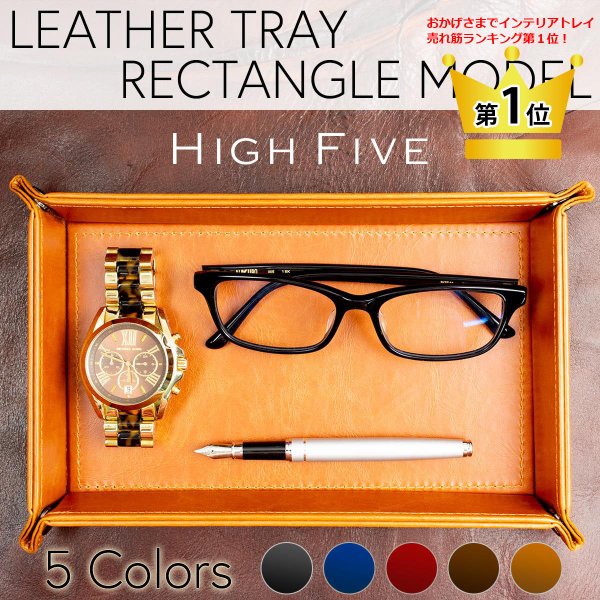 製品名: HIGH FIVE レザートレイ 長方形 小物入れ おしゃれ キャッシュトレイ マネートレー 全5色 外寸法: 幅320mm × 奥行220mm × 高さ5mm 製品重量: 140g