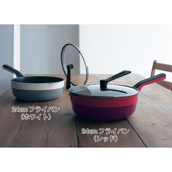 ■24cmフライパン/約44×25.5×15(蓋装着時高さ)cm、内寸:約24cm ●満水容量/24cmフライパン:約3.3L ●主材/24cmフライパン本体:アルミニウム合金(内面:アルマイト、ふっ素樹脂塗膜加工、外面:アルマイト、焼付塗装)、底部:スチール、ガラスフタ:強化ガラス ●電磁調理器に対応(200Vを含む全て) ●付属品/24cmフライパン:ガラスフタ ●日本製(24cmフライパン本体:韓国製、ガラスフタ:中国製)