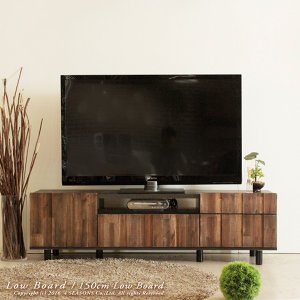 【商品説明】まるで古い小屋の壁のような、味のある前板のデザインが新鮮なローボードが登場。新たな素材としてアカシア無垢材を使用、集成材を使うことでよりヴィンテージ感を演出しています。ローボード左側は片開き扉のラック、中央下部はフラップ扉、右側は引出し2杯と3種類の収納を設けました。AV機器や説明書、DVDなど収納力も高いアイテムです。