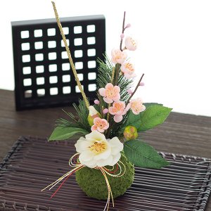 正月 こけ玉アレンジ 造花 アートフラワー