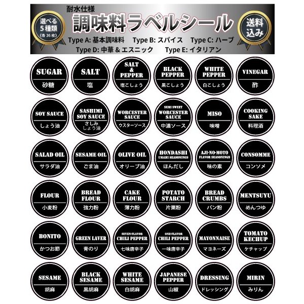 よく使う基本調味料・スパイス・ハーブ・中華エスニック・イタリアンを全5種ラインナップ