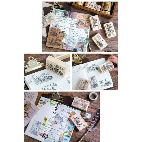レトロフランスの地図や街並みをイメージしたデザインで、ワックスペーパーやクラフト紙などに押すとヴィンテージ感が出ます。