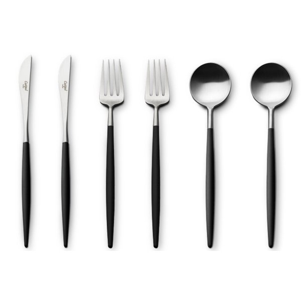 サイズ テーブルスプーン:全長 210mm ディナーフォーク:全長 215mm ディナーナイフ:全長 223mm 素材 18-10ステンレス、樹脂 原産国 ポルトガル パッケージ 化粧箱
