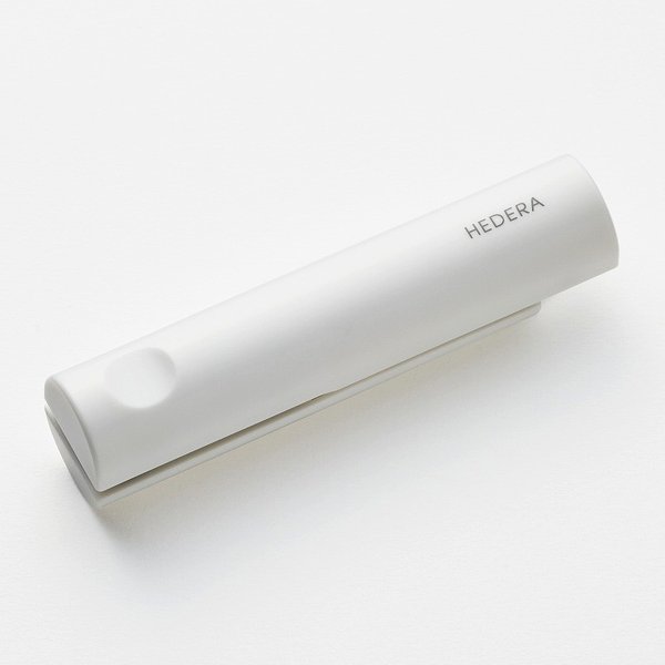 本体をコンパクトに収納できる構造でペンケースに収納が可能、未使用時は卓上で立てられるデザインにしました。 手の中に納まりやすい円柱型の本体で自然に力を入れられる形状です。10号針が適合し、普通紙10枚まで綴じることが可能です。