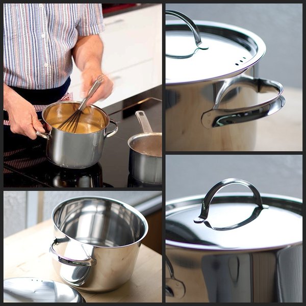 サイズ 直径 17.5cm /高さ 13cm(つまみ含む)/幅 22cm(取っ手含む)/満水時水量 1700ml 重さ 約630g 材質 18-10ステンレス 使用区分 食洗機、ガスコンロ・電気コンロ・IH 生産 フィンランド